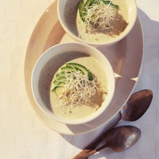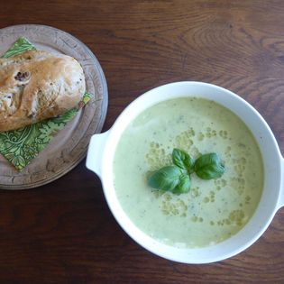 Courgette, Pea and Mint Soup with Goat’s Cheese Toasts