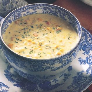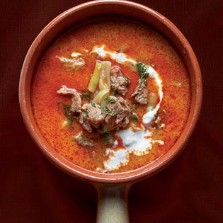 Spiced Red Lentil Soup with Bacon and Parsley Cream