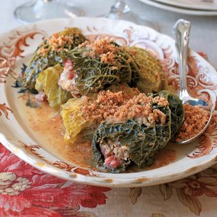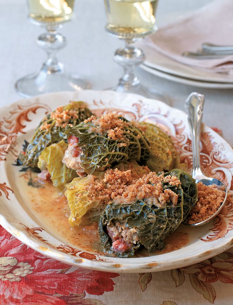 A variety of cabbage with wrinkled leaves and a loose head, Savoy cabbage is one of the finest brassicas to eat when cooked. The leaves have a delicate flavor and texture and are full of goodness. Try them in a simple Cabbage Soup with Dumplings, or make the whole head a Spectacular Russian Stuffed Cabbage Rose centrepiece.