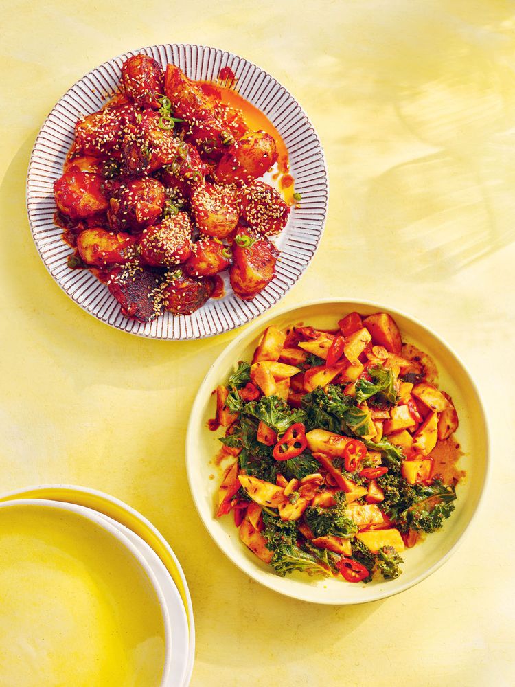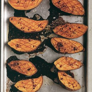 Baked sweet potatoes with honey and chilli