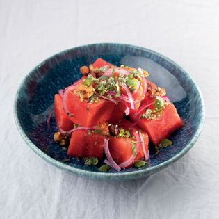 Watermelon Salad with Lime Sherbet and Spiced Nuts