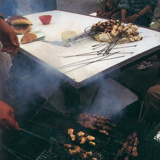 In 1963 Carrier opened a restaurant (Carrier's) in Camden Passage, Islington, then home to the antiques shop of the late Christopher Gibbs, confidente of The Rolling Stones and darling of Swinging London's beau monde. A Carrier's menu from the early 70s includes Oeufs à la Russe, Mr. Carrier's Super Sirloin, Truffled Chicken Kiev and French Pears in Chablis: for there was always something of the enthusiastic connoisseur about Carrier (The Connoisseur's Cookbook, Random House, 1965). In an age when the aspirational middle class (encouraged by the dual temptation of credit card and Sunday colour supplement) aspired to a grown-up world of Viyella, cognac, executive cars and expensive cigarettes, Carrier made 'international' food accessible to post-war British palates. And as advances in the jet airliner made travel a real possibility for those other than the rich, Carrier cut a dash with his exotic Continental fare.