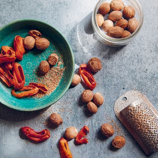 There is a Milk chocolate tart with nutmeg pastry in the book. What I like is two things: One, it is using nutmeg singularly. Nutmeg is so often used in spice blends where its flavour is mixed with cinnamon and ginger, and it doesn't get to sing out on its own. But here it gets to really give its flavour profile to the pastry. And then the nutmeg grated on top of the dark-milk chocolate custard cuts into the sweetness and helps make it more nuanced and interesting.