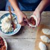The classic Lithuanian cepelinai dumplings are usually stuffled with minced meat and served with soured cream and fried bacon bits, so if you’re not cooking for vegetarians, feel free to add bacon to the onion topping. Conversely, the dumplings are vegan — it’s only the accompanying soured cream that isn’t, and you could easily leave it out. Dried lovage (lubczyk) is available from all Polish shops, but if you can’t get your hands on any, you can replace it with dried oregano.