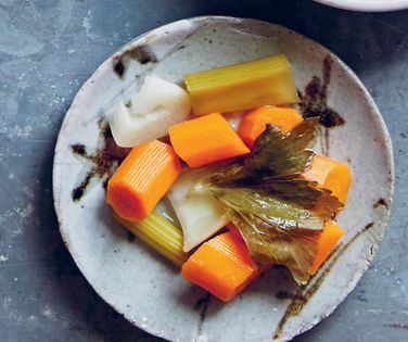 Celery isn’t a great love of mine, but fermenting transforms what can be a rather bland, watery vegetable into an aromatic wonder! I can’t get enough of the fermented stuff, particularly this version with carrot, and everyone who tries it has the same reaction — my mama couldn’t stop eating this ferment, complete with a look of amazement every time she popped a piece into her mouth.