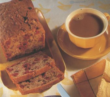 In the late Autumn when cranberries appear in the shops, freeze a few packages to enjoy in the new year. Their tart flavour and attractive bright red colour enhance many dishes. This is a lovely tea bread, beautiful to look at and perfect with jam. It is also good toasted.