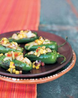Test the collective machismo of your gathering with these delicious little peppers oozing with cheese, garlic, and sweet shrimp. I like to use different colors of small peppers—an ensemble of yellow güero, jalapeño, and red “lipstick” or other sweet miniature peppers looks particularly attractive. If you use jalapeños or güeros, they will definitely be spicy. Toritos take just a minute to make, and they can be prepared ahead and finished in the oven. The fillings can be varied according to