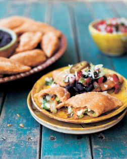 Half-moon-shaped panuchos are a variation on a Yucatecan recipe made from fresh corn masa dough, stuffed with a delicious filling of gooey cheese and delicate zucchini flowers, fried until crisp, and served topped with black beans, crema, and salsa. (In the Yucatán, the beans are frequently on the inside.) The filling used here is typically Mexican, but you might come up with your own, less traditional variations. Lard is often used for frying panuchos, but vegetable oil or shortening or a