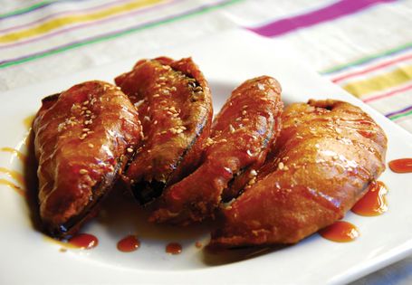 Eggplant was the queen vegetable of Al-Andalus, originally from Persia. Again, etymology proves this fact—as the word transited from the Persian bahhimjan to the Arabic badinjan to the Spanish berenjena. Eggplant fritters, an absolute classic of Córdoba that has conquered Andalucía, are usually drizzled in honey or molasses—you can substitute either for the Pedro Ximénez reduction used here.