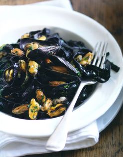 For home-made black pasta, use 400g (14 oz) flour, 2 medium eggs and the ink from 2 small cuttlefish diluted with enough water to make 100ml (30 oz). Make as the Basic Pasta Dough.