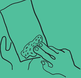 Hold the nori in the palm of your hand and place the rice on lower third of the nori.