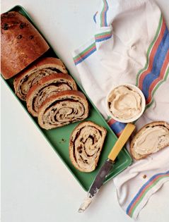 Griff loves cinnamon swirl bread so much that he had to come up with his own recipe. The trick to getting a perfect cinnamon swirl in the center is to lightly mist the dough with water and then pat the cinnamon filling all over it before rolling it up like a jelly roll. This bread is great for toast.