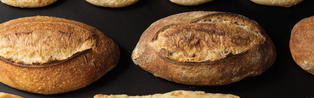 Combine the flours, water, and sourdough starter and mix with the dough hook attachment on low speed. Let the dough rest for 15 minutes. Add the salt and mix 1 minute on low speed and 2 minutes on medium speed. The dough should be slightly soft but elastic. Mix to the improved stage of gluten development.