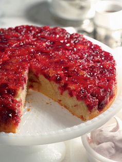 I think of cranberries as the sour cherries of winter. The arpeggio of contrasting elements in this cake provides compelling flavor and texture. The sweet, tender butter cake and the tangy, tart crunch of the cranberries, mellowed by the raspberry preserves, are drawn into harmony by the billowy, creamy raspberry meringue. For a marvelous springtime version, make the rhubarb topping and strawberry meringue given in the Variation. Or, for a riche