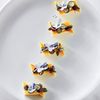 I created this spectacular cheesecake at the request of the charming and renowned cookbook author and screen actress Madhur Jaffrey. She was hoping that the cake would be similar to a mango fool, with streaks of the mango pulp throughout. This turned out to be a challenge because the mango wanted to integrate into the cheese filling. The solution was to concentrate the mango pulp before streaking it through t