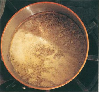 This cooked butter is also called beurre noisette. Unlike whole butter, brown butter contains no water, so it has an intense