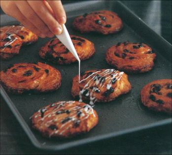These are an authentic version of the Danish pastries most of us are used to seeing. They are filled with almond cream, raisins, and walnuts, but fillings are easy to improvise. Cream cheese filling, hazelnut cream, diced dried fruit, and cooked fresh fruit are all possibilities. Because these Danish expand sideways as they proof, they must be proofed on an oiled sheet pan, which will allow them to expand.