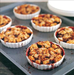 A cobbler is simply fruit—here, Bing cherries—baked with crumbled biscuit dough on top. The crisp dough provides a contrasting texture to the soft fruit. You can make cobblers out of just about any fruit, fresh or frozen. And unlike fruit pies and tarts for which you have to do something to absorb the liquid released by the raw fruit, for cobblers this is unimportant. In fact, a cobbler with hot runny fruit juice in the bottom of the dish is quite lovely. The ratio of fruit to dough depends
