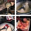 Use the first five ingredients to make a crème anglaise mix, then cool down and churn in an ice cream machine. Meanwhile, strain the stewed rhubarb and reduce down the juices. Allow to cool. When the ice cream is nearly frozen, add the rhubarb pulp to the mixture and churn to give the ripple effect, then turn off the machine.