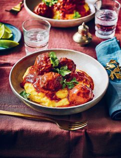 Bump up the flavour of your meatballs with black pudding and chocolate, and serve them Mexican style with a thick, rich, mole sauce. The truly bold can try it with 100% cocoa chocolate, which is very authentic but slightly more bitter-tasting. For a smoother result, 75% chocolate is just as good. You can make the meatballs and cook them and the sauce in the same pan so all the tasty meat juices get added to the sauce. This is a simplified mole sauce as authentic versions can have up to 50 i