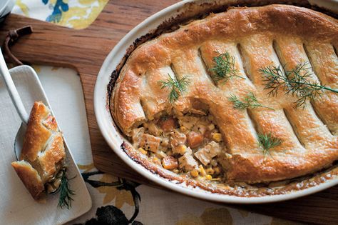 Until recently, dill was an underappreciated herb in our garden. We would mostly grow it for its delicate structure and because it was a favorite of the swallowtail butterfly caterpillars. It wasn’t until we had dill in a cream sauce with chicken, accented by a touch of mustard, that we started making sure we grew enough for the caterpillars and ourselves. Take that creamed dill chicken and encase it in puff pastry for a potpie, and it becomes perfect comfort food. Over the winter, g