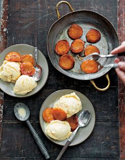 Silky, velvety apricots are one of the first signs that summer has arrived. If we can’t keep up with the delicate fruits, we’ll cook them and serve them à la mode. There’s always a tub of homemade ice cream in our fridge, and we love inventing flavors for every new batch. But a go-to favorite is our vanilla rum ice cream, which can be paired with almost any poached fruit. When apricots are peaking, a few tubs of vanilla rum ice cream will be ready and waiting in the freezer. These two are a