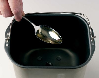 Pour the water and sunflower oil into the bread machine pan. However, if the instructions for your machine specify that the yeast is to be placed in the pan first, reverse the order in which you add the liquid and dry ingredients.