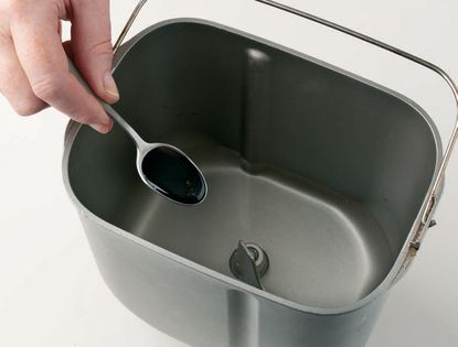 Pour the water, molasses and walnut or olive oil into the bread pan. If the instructions for your machine specify that the yeast is to be placed in the pan first, reverse the order in which you add the liquid and dry ingredients.
