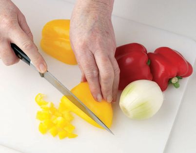 Chop the peppers and onion into 1cm/½ inch pieces.