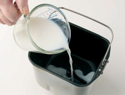 Pour the milk into the bread machine pan. If the instructions for your bread machine specify that the yeast is to be placed in the pan first, simply reverse the order in which you add the liquid and dry ingredients.