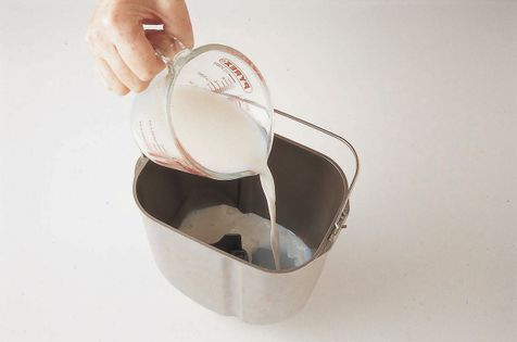 Pour the milk into the bread machine pan. Add the egg. If the instructions for your machine specify that the yeast is to be placed in the pan first, reverse the order in which you add the liquid and dry ingredients.