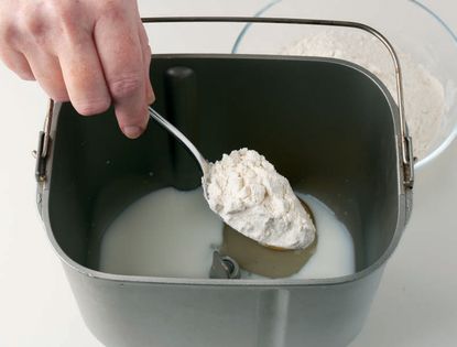 Pour the milk and egg into the bread machine pan. If the instructions for your bread machine specify that the yeast is to be placed in the pan first, simply reverse the order in which you add the liquid and dry ingredients.