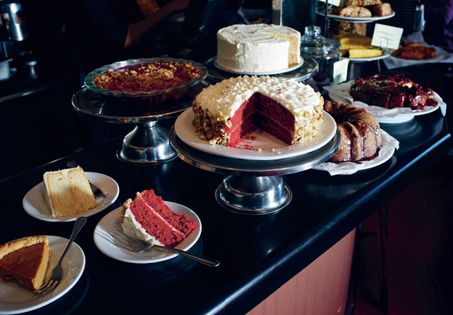 We put this cake on the counter and start counting down: 5 slices left, 2 slices. It rarely lasts more than an hour. Soon there’s nothing left but a plate of red crumbs. I find that I need to perform quality control on this cake a little more than on others, constantly “testing” to make sure it’s just right. Okay, it’s a weakness. And this is a cake that always looks festive. One of my all-time favorites, this is the cake we served at our wedding. Did I mention that I love this cake?