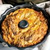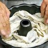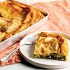 Wilt the spinach in a pan then drain it well. You want to get as much of the water out as possible – a good method is to put the wilted spinach in a clean tea towel and wring it out, but you can also just squeeze it out with your hands.