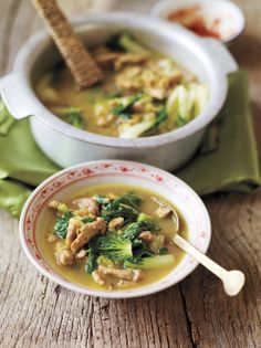 I had this warming Karen version of sour soup in a village not far from Moulmein, the port at the mouth of the Salween River. Rather than being fish-broth-based, as many sour soups are, it is made with pork and freshly cooked greens. The shrimp paste (ngapi) is very subtle and blends into the other flavors seamlessly.
