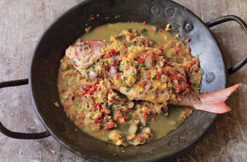 Far upriver from the coast of Rakhine State lies Mrauk U, a sleepy tourist destination of villages and Buddhist ruins. On my last night there, the main dish for supper at the guesthouse where I was staying was a whole fish—I can’t tell you the kind—cooked this way. It’s a