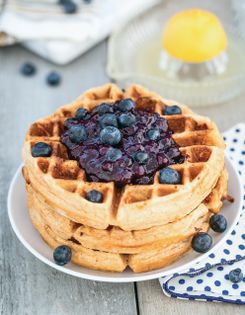 Lemon Cornmeal Waffles with Blueberry Sauce