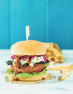 I think we can all agree there is a type of hunger that only a burger can satisfy. When that hunger arises, all you can think of is a meaty patty with all the fixin’s. Nothing else will do. That’s when this burger comes to the rescue. It’s a hearty, BBQ-flavored patty made of beets, farro, and red lentils. Naturally, it’s topped with Tempeh Bacon, homemade pickled red cabbage, and even more Barbecue Sauce. Plant-based che
