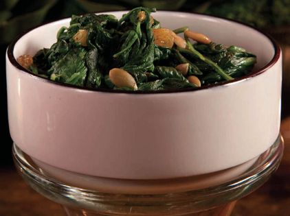 Toasted pumpkin seeds and raisins transform ho-hum spinach to an unexpected delight. It’s my spin on the classic Galician spinach dish espinacas a la gallegas made with pine nuts and currants.