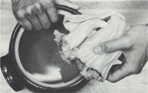 Totally immerse the vegetables in the brine in a ceramic pot.