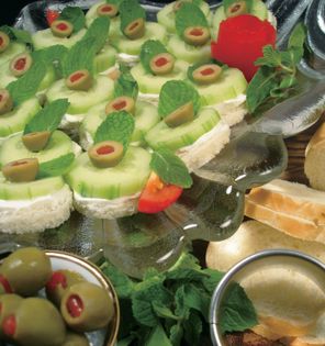These tasty canapés are so easy to prepare and are the perfect choice with cocktails or as a tray-passed hors d’oeuvre. The flavor of the fresh mint complements the tangy bite of the olives, and the cool yogurt cheese is so refreshing with the crisp cucumber.