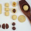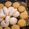 Traditionally these cookies are offered around the holidays and on special occasions, although we never needed a special occasion to enjoy these treats. They are made of buttery semolina dough stuffed with a variety of fillings, then pressed into decoratively carved wooden molds of varying shapes and sizes. The different shapes include shallow, circular cookies filled with dates, as shown on the next page; circular dome-shaped ones filled with walnuts and dusted with powdered sugar; and lon