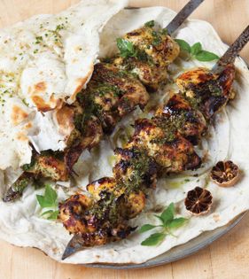 This chicken kabab tastes quite different from the standard one served in Tehran or Tabriz. The combination of cardamom, dried lime, chili, and mint give it a distinctive flavor, especially if you marinate your chicken for 3 days and cook it over charcoal.