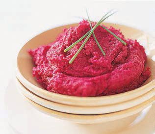 Prepare the beetroot, as explained above. Cook the beetroot in simmering water for ½–2 hours, or until tender when tested with a knife. When cool enough to handle, rub off the skins and mash with an equal quantity of cooked potatoes. Season with salt and pepper. Add chopped chives and a knob of butter. Serve with fish, chicken or meat.