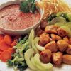 Stir-fried chicken with blanched and raw vegetables is a dish hardly unique to Thai cookery – it is a staple item in many cuisines. What transforms this version into something uncommonly Thai is the dipping sauce that captures the essence of that cuisine. This makes a memorable starter or light luncheon dish.