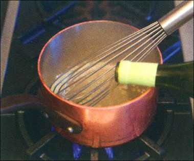 Combine 2 minced shallots and ½ cup white wine and simmer to reduce by three-fourths.