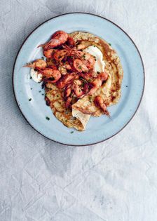 The Danes are more than happy to take the time to peel the tiny Fjordrejer shrimp – that’s how much they savour the taste – but they can also be eaten with their shells on. School prawns can too, and make a fine substitute. Serve on pancakes or open sandwiches.