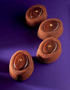 I add the soft yuzu (Japanese citrus fruit) ganache to the centre of our chocolate financiers to make the cakes that bit more indulgent. If you can’t get hold of fresh yuzu zest, you can substitute with any other citrus fruit.