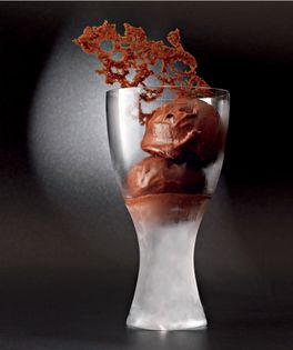 A sorbet gives you a cleaner and more intense chocolate flavour and the raspberry purée brings out its fruity characteristics. The lace tuille this is finished with creates an eye-catching dish.