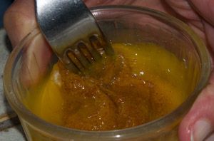 1. Place the yolk in a mixing bowl and add the salt, pepper, cayenne, and mustard.
